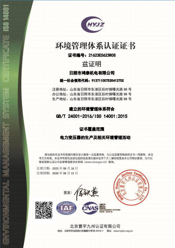 環(huán)境-日照市鴻泰機電有限公司證書中文帶標EMS