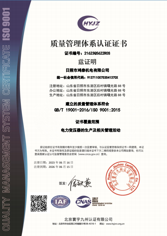 日照市鴻泰機電有限公司證書中文帶標QMS
